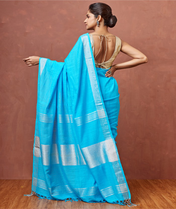 Presenting Slice of Bengal handloom cotton saree for women. This Bengali Cotton Tant Sari of latest design gives an elegant and modern look. Made from the finest and pure cotton, the sarees have a silver jari border. The Pallu has broad silver jari blocks. The blouse piece is in running.
